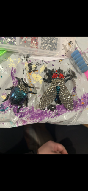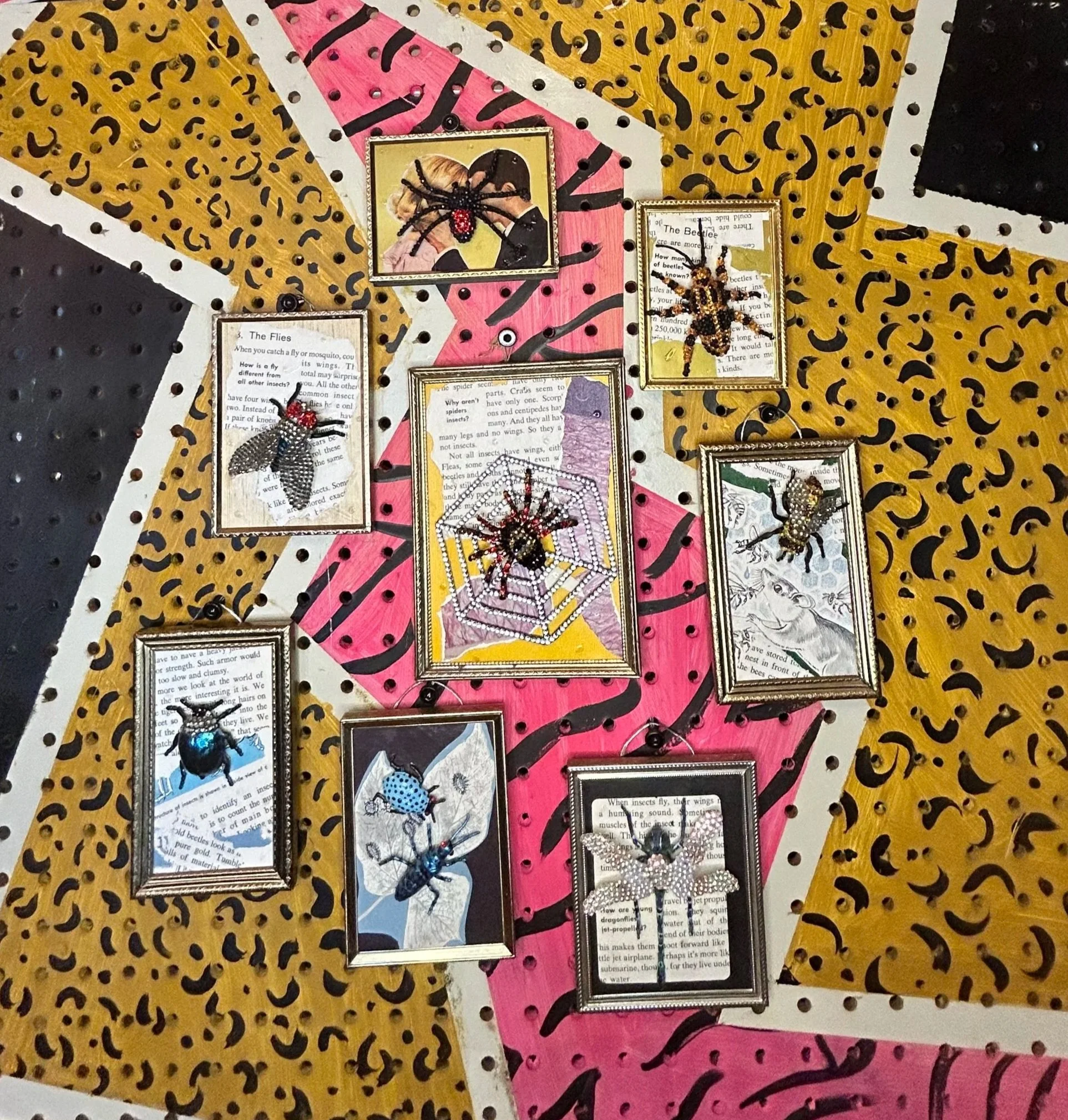 Here are some photos of the Bedazzled Bugs (and Arachnids) Collection before going into their frames. I had so much fun creating these pieces!